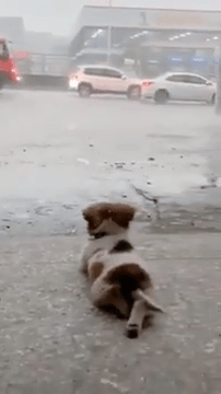 Dogs are commonly seen as energetic animals that enjoy engaging in walks and playtime, but they also require moments of relaxation and solitude. Some dogs can find joy in simple pleasures more easily than humans, appreciating the peacefulness of nature. Take, for example, a small dog that finds contentment in observing rainfall.